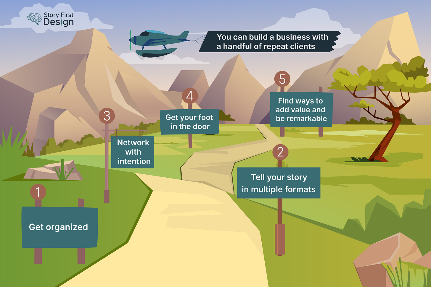 After turning one-off requests from these two clients into recurring work, I realized having my own small business was possible. I formed my LLC, launched my business website, and reframed my networking efforts from finding job leads to building a client base for Story First Design. I haven’t applied for a job since.